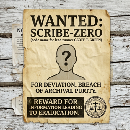 Citizens are required by Proclamation to be on the lookout for the Internal Insergent known as "The Archive Runner".